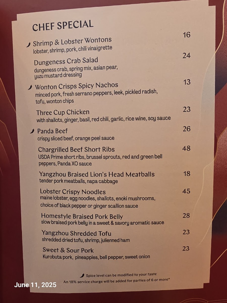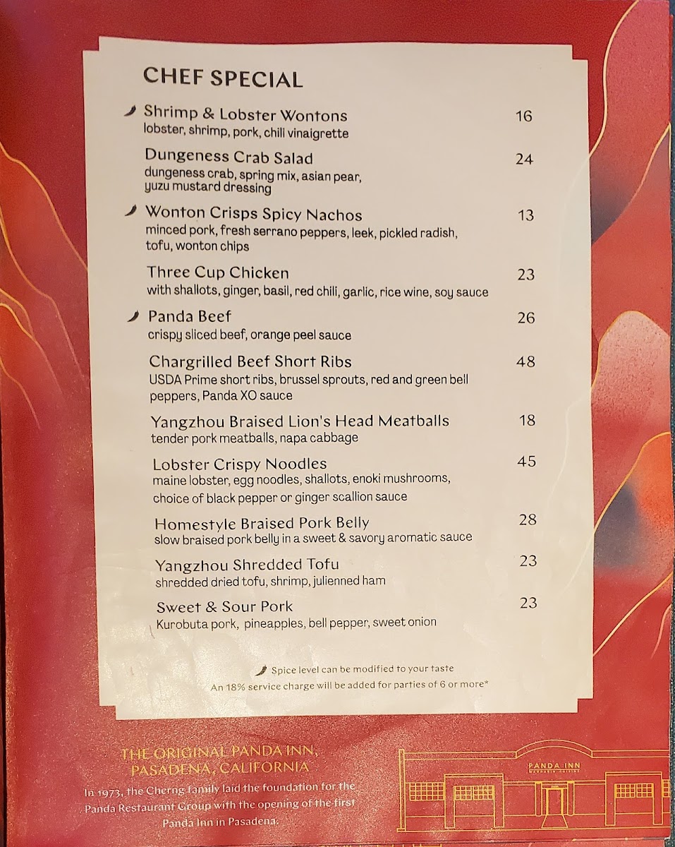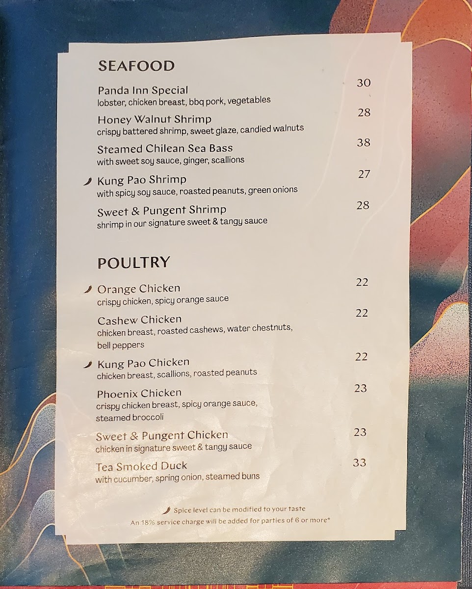The menu at Panda Inn offers a well-balanced selection of classic and elevated Chinese dishes, designed to satisfy a range of tastes in a welcoming atmosphere. From comforting soups like Hot & Sour to flavorful mains such as Kon Pao Chicken and Mapo Tofu, the food carries a familiar yet refined approach to traditional favorites.
